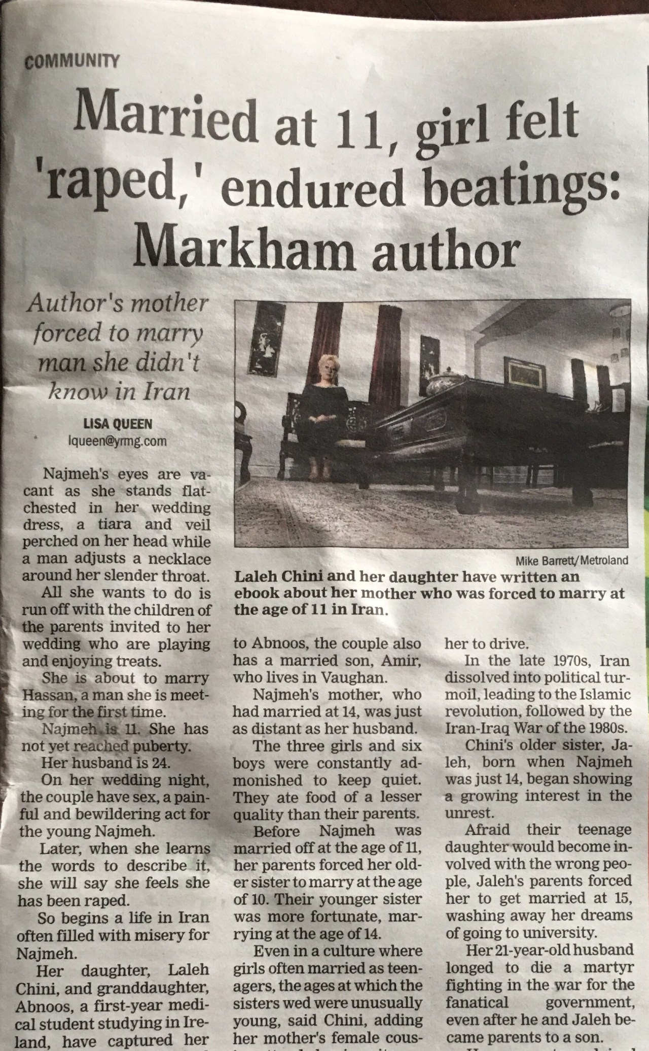 Laleh khanum. did I understand this right, that this happened to your mother? My heart was torn apart reading this, yet you know this even happens in the country I live in. I do believe that this has to be published as a book.