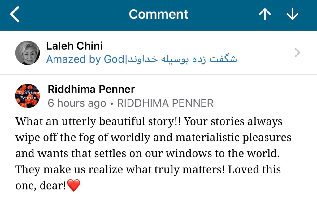 Thank you so so much, Laleh!!❤️You posting my comments means so so so much to me!!😊❤️ And, believe me it is the magic of your stories that drive your readers to leave you little notes of love!❤️ Keep writing and inspiring.😊