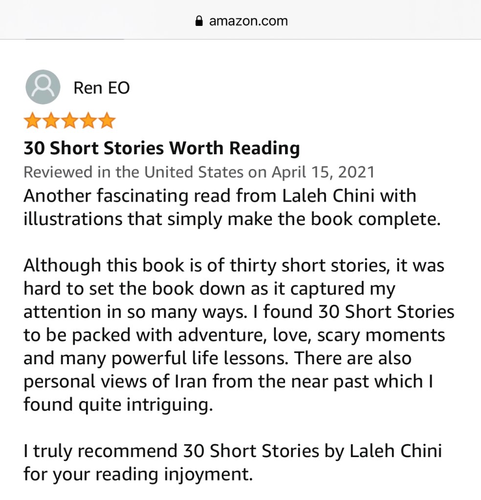30 short stories of memories, adventures, beliefs, and some a creation by Laleh Chini. Buckle up, let’s laugh, cry, learn, and most of all, have fun with this ride. Buy a copy and share your thoughts with me and your friends. ❤