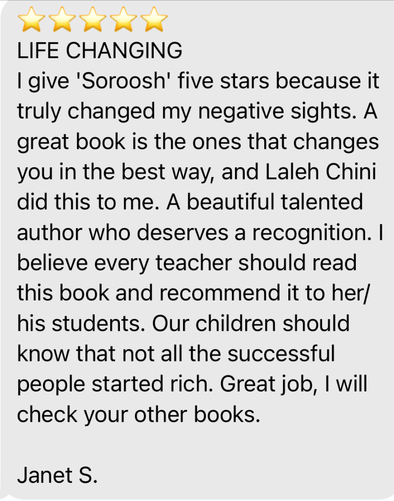 “381st” Reviews and comments By Laleh ChiniJuly 12, 2021 ( 2 ) Share this: Click to share on X (Opens in new window) X Click to share on Facebook (Opens in new window) Facebook Click to share on LinkedIn (Opens in new window) LinkedIn Click to share on Tumblr (Opens in new window) Tumblr Click to share on Telegram (Opens in new window) Telegram Like Loading... Categories: award winner, fiction, moral, Novel StoryTags: award winner, fiction, moral, Novel Story Related Articles The Price of Awareness/بهای آگاهی By Laleh Chini1 day ago Reviews and comments By Laleh Chini4 days ago Reviews and comments By Laleh Chini2 weeks ago 2 comments › Leena T Pandey July 15, 2021 • 7:25 am Congratulations on your success! LikeLiked by 1 person Reply ↓ Laleh Chini July 15, 2021 • 9:44 am You’re amazing Leena ❤️ LikeLike Reply ↓ Leave a comment Cancel reply Δ