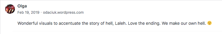 “406-418th” Reviews and comments By Laleh ChiniJuly 24, 2021 ( 7 ) All related to my book “30 Short Stories by Laleh Chini” Share this: Click to share on X (Opens in new window) X Click to share on Facebook (Opens in new window) Facebook Click to share on LinkedIn (Opens in new window) LinkedIn Click to share on Tumblr (Opens in new window) Tumblr Click to share on Telegram (Opens in new window) Telegram Like Loading... Categories: adult picture book, memoir, moral, picture book, short stories picture book, Short Story, StorytellingTags: adult picture book, memoir, moral, short stories, short stories picture book Related Articles The Price of Awareness/بهای آگاهی By Laleh Chini2 days ago Reviews and comments By Laleh Chini5 days ago Sense of Modesty/حس فروتنی By Laleh Chini1 week ago 7 comments › luisa zambrotta July 24, 2021 • 9:25 am Great! Congratulations 🌼🌼🌼 LikeLiked by 1 person Reply ↓ Laleh Chini July 24, 2021 • 6:42 pm Thanks Luisa.❤️ LikeLiked by 1 person Reply ↓ Cindy Georgakas July 24, 2021 • 11:21 pm finally ordering your books.. on amazon? LikeLiked by 1 person Reply ↓ Laleh Chini July 25, 2021 • 5:24 pm Thanks a million dear.❤️❤️❤️ LikeLiked by 1 person Reply ↓ Cindy Georgakas July 25, 2021 • 6:52 pm of course.. about time.. 💖 LikeLiked by 1 person Laleh Chini July 26, 2021 • 7:04 pm 🌷💕 LikeLiked by 1 person Cindy Georgakas July 26, 2021 • 7:13 pm 💖💖🌷 LikeLiked by 1 person Leave a comment Cancel reply Δ