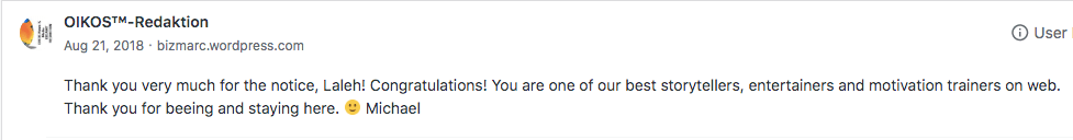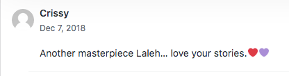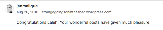 Reviews and comments By Laleh ChiniJuly 31, 2021 ( 12 ) All related to my blog “A Voice From Iran” Share this: Click to share on X (Opens in new window) X Click to share on Facebook (Opens in new window) Facebook Click to share on LinkedIn (Opens in new window) LinkedIn Click to share on Tumblr (Opens in new window) Tumblr Click to share on Telegram (Opens in new window) Telegram Like Loading... Categories: bedtime story, fable, folk tale, parable, Short Story, Storytelling, taleTags: bedtime stories, moral, parable, short stories, story telling, yarn Related Articles The Price of Awareness/Ψ¨ΩΨ§Ϋ Ψ’Ϊ―Ψ§ΩΫ By Laleh Chini2 days ago Sense of Modesty/ΨΨ³ ΩΨ±ΩΨͺΩΫ By Laleh Chini1 week ago Our Own True Place/Ψ¬Ψ§ΫΪ―Ψ§Ω ΩΨ§ΩΨΉΫ Ω Ψ§ By Laleh Chini2 weeks ago ( 4 ) 12 comments › luisa zambrotta July 31, 2021 • 8:17 am Congratulations! πππ LikeLiked by 1 person Reply ↓ Laleh Chini July 31, 2021 • 9:44 pm Thanks Luisa β€οΈπ LikeLiked by 1 person Reply ↓ vincenza63 July 31, 2021 • 8:30 am Congratulations Laleh βΊ LikeLiked by 1 person Reply ↓ Laleh Chini July 31, 2021 • 9:45 pm Thanks Vincen.ππ LikeLike Reply ↓ Gibberish July 31, 2021 • 8:49 am Each praise so well deserved..your stories are indeed so beautiful with such relatable characters and extraordinary circumstances ππ LikeLiked by 1 person Reply ↓ Laleh Chini July 31, 2021 • 9:46 pm Thatβs very kind of you dear. Means a lot.β€οΈπ·π LikeLiked by 1 person Reply ↓ janetsm July 31, 2021 • 8:51 am All well-deserved accolades, Laleh! Enjoy your weekend. LikeLiked by 1 person Reply ↓ Laleh Chini July 31, 2021 • 9:46 pm Thanks my dear Janet, you too.β€οΈ LikeLike Reply ↓ tylerus August 1, 2021 • 10:09 am Awesome – and well-deserved. LikeLiked by 1 person Reply ↓ Laleh Chini August 1, 2021 • 6:07 pm Appreciate your kindness dear.π· LikeLike Reply ↓ 100 Country Trek August 3, 2021 • 6:50 pm Congratulations..you are an amazing writer. LikeLiked by 1 person Reply ↓ Laleh Chini August 3, 2021 • 9:38 pm Youβre an awesome friend.πβ€οΈ LikeLike Reply ↓ Leave a comment Cancel reply Δ