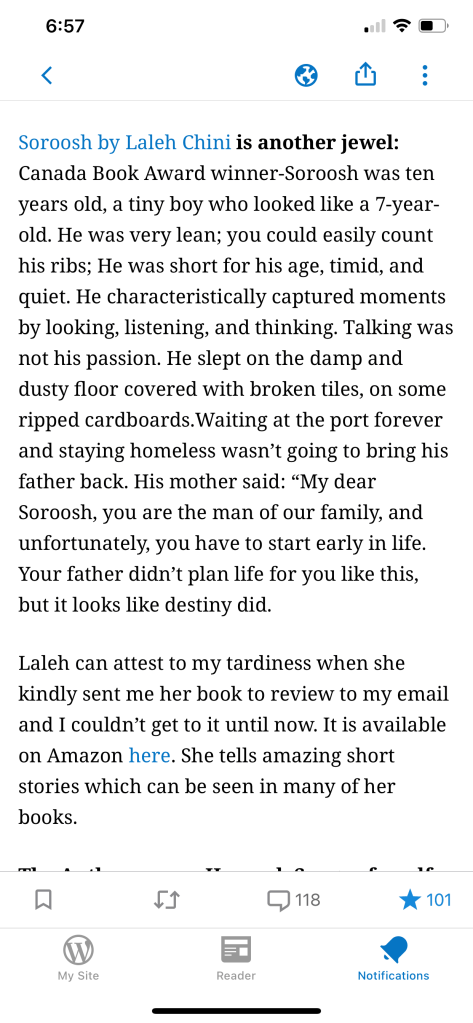 “626th” Reviews and comments By Laleh ChiniSeptember 4, 2021 ( 11 ) Share this: Click to share on X (Opens in new window) X Click to share on Facebook (Opens in new window) Facebook Click to share on LinkedIn (Opens in new window) LinkedIn Click to share on Tumblr (Opens in new window) Tumblr Click to share on Telegram (Opens in new window) Telegram Like Loading... Categories: award winner, folk tale, moral, Novel StoryTags: award winner, fiction, Novel Story Related Articles The Price of Awareness/بهای آگاهی By Laleh Chini2 days ago Reviews and comments By Laleh Chini5 days ago Sense of Modesty/حس فروتنی By Laleh Chini1 week ago 11 comments › ivor20 September 4, 2021 • 7:07 pm Yeah , a great promo by Cindy and love her fascinating site .. LikeLiked by 2 people Reply ↓ Laleh Chini September 5, 2021 • 3:15 pm Thanks Ivor.❤️ LikeLiked by 1 person Reply ↓ Cindy Georgakas September 6, 2021 • 7:21 pm Why Thanks Ivor.. I’ll make it to you eventually.. 💖 LikeLiked by 2 people Reply ↓ Laleh Chini September 8, 2021 • 11:34 am ❤ LikeLiked by 1 person Cindy Georgakas September 8, 2021 • 1:58 pm 💖 LikeLiked by 1 person Cindy Georgakas September 6, 2021 • 7:21 pm awww this was sweet sooo happy to share your wonderful art!!! 💖💖💖💖 LikeLiked by 1 person Reply ↓ Laleh Chini September 8, 2021 • 11:33 am Thanks to your kindness sweetheart.<3<3<3 LikeLiked by 1 person Reply ↓ Cindy Georgakas September 8, 2021 • 1:59 pm you”re so welcome!!!❣️ LikeLiked by 1 person Eternity September 25, 2021 • 6:55 pm I love your work; it is always good. Thanks for your likes of my posts. LikeLiked by 1 person Reply ↓ Laleh Chini September 26, 2021 • 10:12 am Means a lot, always pleasure dear. 💝 LikeLiked by 1 person Reply ↓ Eternity September 27, 2021 • 12:43 am Thank you very much. LikeLiked by 1 person Leave a comment Cancel reply Δ