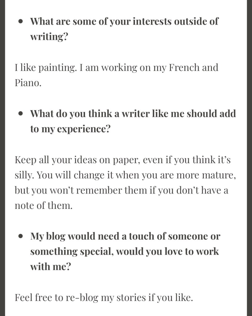 What a lovely interview. Itβs great to read some details about you.