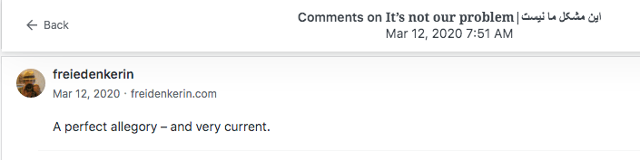 Reviews and comments By Laleh ChiniJune 4, 2022 Thank you. Share this: Click to share on X (Opens in new window) X Click to share on Facebook (Opens in new window) Facebook Click to share on LinkedIn (Opens in new window) LinkedIn Click to share on Tumblr (Opens in new window) Tumblr Click to share on Telegram (Opens in new window) Telegram Like Loading... Categories: award winner, bedtime story, fable, folk tale, moral, Short Story, StorytellingTags: moral, oracle, parable, short stories, Uncategorized Related Articles The Price of Awareness/بهای آگاهی By Laleh Chini1 day ago Reviews and comments By Laleh Chini4 days ago Sense of Modesty/حس فروتنی By Laleh Chini1 week ago Leave a comment Cancel reply Δ