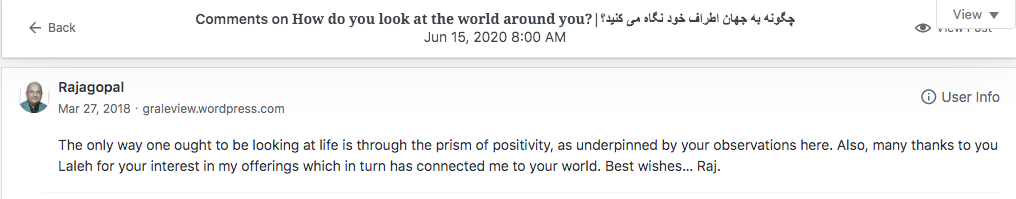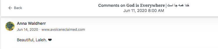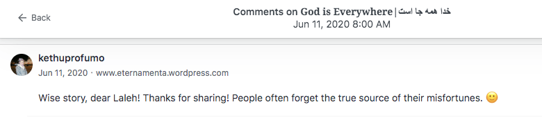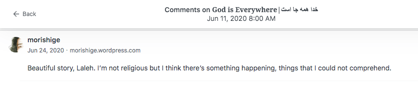 Reviews and comments By Laleh ChiniOctober 8, 2022 Thank you. Share this: Share on X (Opens in new window) X Share on Facebook (Opens in new window) Facebook Share on LinkedIn (Opens in new window) LinkedIn Share on Tumblr (Opens in new window) Tumblr Share on Telegram (Opens in new window) Telegram Like Loading... Categories: award winner, biography, memoir, moral, nonfiction, Novel StoryTags: biography, memoir, moral, Novel Story, Uncategorized Related Articles Dear Lady/بانوی عزیز By Laleh Chini6 hours ago Rich People/افراد ثروتمند By Laleh Chini1 week ago ( 11 ) Reviews and comments By Laleh Chini1 week ago Leave a comment Cancel reply Δ