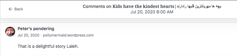 Reviews and comments By Laleh ChiniDecember 3, 2022 Thank you. Share this: Click to share on X (Opens in new window) X Click to share on Facebook (Opens in new window) Facebook Click to share on LinkedIn (Opens in new window) LinkedIn Click to share on Tumblr (Opens in new window) Tumblr Click to share on Telegram (Opens in new window) Telegram Like Loading... Categories: award winner, bedtime story, fable, moral, parable, Short Story, StorytellingTags: moral, narrative, parable, short stories, Uncategorized Related Articles The Price of Awareness/بهای آگاهی By Laleh Chini2 days ago Reviews and comments By Laleh Chini5 days ago Sense of Modesty/حس فروتنی By Laleh Chini1 week ago Leave a comment Cancel reply Δ