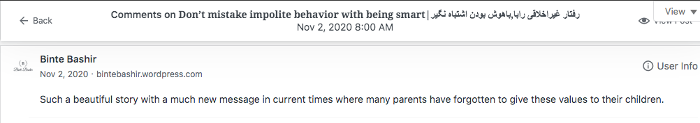 Reviews and comments By Laleh ChiniMarch 11, 2023 Thank you. Share this: Click to share on X (Opens in new window) X Click to share on Facebook (Opens in new window) Facebook Click to share on LinkedIn (Opens in new window) LinkedIn Click to share on Tumblr (Opens in new window) Tumblr Click to share on Telegram (Opens in new window) Telegram Like Loading... Categories: award winner, fable, folk tale, moral, Short Story, Storytelling, taleTags: moral, narrative, parable, short stories, Uncategorized Related Articles The Price of Awareness/بهای آگاهی By Laleh Chini1 day ago Reviews and comments By Laleh Chini4 days ago Sense of Modesty/حس فروتنی By Laleh Chini1 week ago Leave a comment Cancel reply Δ
