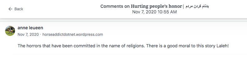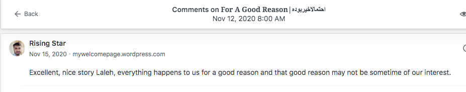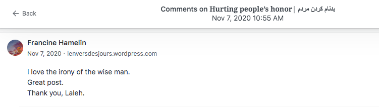 Reviews and comments By Laleh ChiniMarch 18, 2023 Thank you. Share this: Click to share on X (Opens in new window) X Click to share on Facebook (Opens in new window) Facebook Click to share on LinkedIn (Opens in new window) LinkedIn Click to share on Tumblr (Opens in new window) Tumblr Click to share on Telegram (Opens in new window) Telegram Like Loading... Categories: bedtime story, folk tale, moral, Short Story, StorytellingTags: moral, narrative, parable, short stories, Uncategorized Related Articles The Price of Awareness/بهای آگاهی By Laleh Chini1 day ago Reviews and comments By Laleh Chini4 days ago Sense of Modesty/حس فروتنی By Laleh Chini1 week ago Leave a comment Cancel reply Δ
