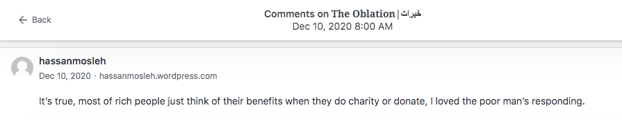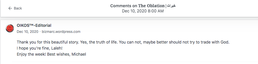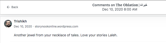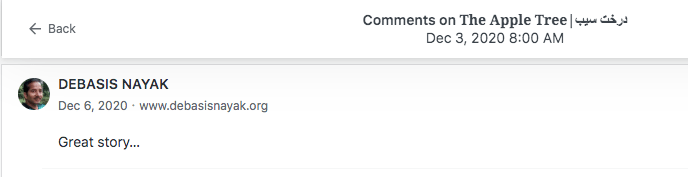 Reviews and comments By Laleh ChiniApril 8, 2023 Thank you. Share this: Click to share on X (Opens in new window) X Click to share on Facebook (Opens in new window) Facebook Click to share on LinkedIn (Opens in new window) LinkedIn Click to share on Tumblr (Opens in new window) Tumblr Click to share on Telegram (Opens in new window) Telegram Like Loading... Categories: award winner, bedtime story, fable, folk tale, moral, Novel Story, StorytellingTags: moral, narrative, Novel Story, parable, short stories, Uncategorized Related Articles The Price of Awareness/بهای آگاهی By Laleh Chini1 day ago Reviews and comments By Laleh Chini4 days ago Sense of Modesty/حس فروتنی By Laleh Chini1 week ago Leave a comment Cancel reply Δ