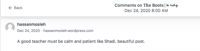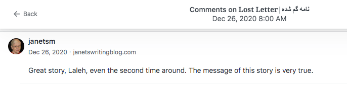 Reviews and comments By Laleh ChiniApril 22, 2023 Thank you. Share this: Click to share on X (Opens in new window) X Click to share on Facebook (Opens in new window) Facebook Click to share on LinkedIn (Opens in new window) LinkedIn Click to share on Tumblr (Opens in new window) Tumblr Click to share on Telegram (Opens in new window) Telegram Like Loading... Categories: award winner, bedtime story, fable, folk tale, moral, Novel Story, StorytellingTags: moral, narrative, Novel Story, parable, short stories, Uncategorized Related Articles The Price of Awareness/بهای آگاهی By Laleh Chini1 day ago Reviews and comments By Laleh Chini4 days ago Sense of Modesty/حس فروتنی By Laleh Chini1 week ago Leave a comment Cancel reply Δ