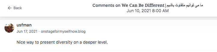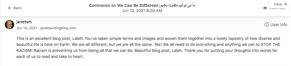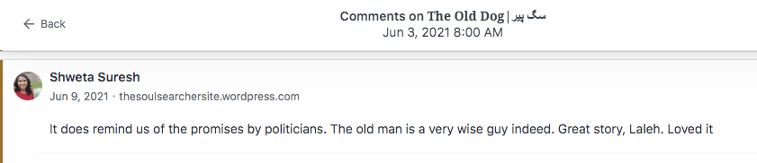 Reviews and comments By Laleh ChiniJuly 15, 2023 ( 12 ) My little appreciation to my dear followers; all related to my blog. Share this: Click to share on X (Opens in new window) X Click to share on Facebook (Opens in new window) Facebook Click to share on LinkedIn (Opens in new window) LinkedIn Click to share on Tumblr (Opens in new window) Tumblr Click to share on Telegram (Opens in new window) Telegram Like Loading... Categories: award winner, bedtime story, folk tale, moral, Short Story, StorytellingTags: moral, narrative, short stories, storyteller, Uncategorized Related Articles Our Own True Place/جایگاه واقعی ما By Laleh Chini1 day ago Reviews and comments By Laleh Chini4 days ago Expensive Return Ticket/بلیط رفت و برگشت گرانقیمت By Laleh Chini1 week ago 12 comments › christinenovalarue July 15, 2023 • 7:33 am 💖 LikeLiked by 1 person Reply ↓ Laleh Chini July 17, 2023 • 8:27 am ❤️❤️❤️ LikeLike Reply ↓ Cindy Georgakas July 18, 2023 • 7:07 pm Congratulations, well deserved Laleh💕💕 LikeLiked by 1 person Reply ↓ Laleh Chini July 19, 2023 • 1:38 pm Thanks so much Cindy.❤️😘 LikeLiked by 1 person Reply ↓ Cindy Georgakas July 19, 2023 • 2:13 pm You’re welcome Laleh💕💕 LikeLiked by 1 person Jonathan Caswell July 21, 2023 • 10:27 pm Reblogged this on By the Mighty Mumford and commented: MORE—MORE—! APPLAUSE! LikeLiked by 1 person Reply ↓ Laleh Chini July 23, 2023 • 8:18 am Appreciate your support.🌷 LikeLiked by 1 person Reply ↓ Jonathan Caswell July 23, 2023 • 10:33 am You da storyteller!!!!!! 😀 LikeLiked by 1 person John Solomon Mamman Azi August 11, 2023 • 2:35 pm Well done Laleh Chini. Please I need a favor LikeLiked by 1 person Reply ↓ Laleh Chini August 11, 2023 • 4:29 pm Thank you John, sure. LikeLiked by 1 person Reply ↓ John Solomon Mamman Azi August 12, 2023 • 7:37 pm So I’m much welcome then. So honoured Ma Laleh Chini. Thanks. LikeLiked by 1 person Laleh Chini August 13, 2023 • 5:21 pm Awww, you are so kind.🌷 LikeLiked by 1 person Leave a comment Cancel reply Δ