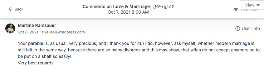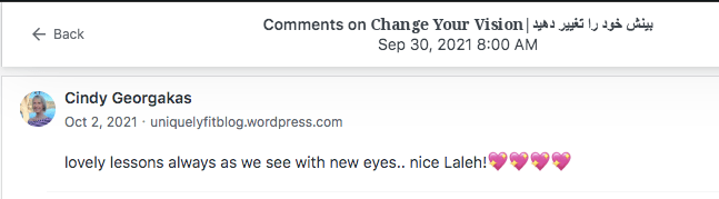 Reviews and comments By Laleh ChiniOctober 28, 2023 ( 4 ) Thank You. Share this: Click to share on X (Opens in new window) X Click to share on Facebook (Opens in new window) Facebook Click to share on LinkedIn (Opens in new window) LinkedIn Click to share on Tumblr (Opens in new window) Tumblr Click to share on Telegram (Opens in new window) Telegram Like Loading... Categories: bedtime story, fable, folk tale, moral, Storytelling, taleTags: moral, parable, short stories, Uncategorized Related Articles Be That One/آن یکی باش By Laleh Chini13 hours ago Reviews and comments By Laleh Chini4 days ago The Price of Awareness/بهای آگاهی By Laleh Chini1 week ago 4 comments › christinenovalarue October 28, 2023 • 10:05 am 🩷 LikeLiked by 1 person Reply ↓ Laleh Chini October 28, 2023 • 4:19 pm 🙏💕 LikeLike Reply ↓ 100 Country Trek October 28, 2023 • 9:09 pm Thanks for sharing this idea Anita LikeLiked by 1 person Reply ↓ Laleh Chini October 30, 2023 • 5:48 pm Thanks sweetheart.❤️ LikeLiked by 1 person Reply ↓ Leave a comment Cancel reply Δ