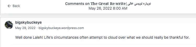 Reviews and comments By Laleh ChiniNovember 4, 2023 ( 6 ) Thank You. Share this: Click to share on X (Opens in new window) X Click to share on Facebook (Opens in new window) Facebook Click to share on LinkedIn (Opens in new window) LinkedIn Click to share on Tumblr (Opens in new window) Tumblr Click to share on Telegram (Opens in new window) Telegram Like Loading... Categories: bedtime story, fable, moral, parable, Storytelling, taleTags: moral, narrative, oracle, short stories, Uncategorized Related Articles Be That One/آن یکی باش By Laleh Chini13 hours ago Reviews and comments By Laleh Chini4 days ago The Price of Awareness/بهای آگاهی By Laleh Chini1 week ago 6 comments › titti________ November 4, 2023 • 9:56 am 🤍🤍 LikeLiked by 1 person Reply ↓ Laleh Chini November 4, 2023 • 1:37 pm 🙏💕 LikeLike Reply ↓ 100 Country Trek November 4, 2023 • 1:57 pm Thanks ❤️ LikeLiked by 1 person Reply ↓ Laleh Chini November 6, 2023 • 5:47 pm 🙏❤️ LikeLike Reply ↓ sherazade November 4, 2023 • 6:42 pm 🦋💙 LikeLiked by 1 person Reply ↓ Laleh Chini November 6, 2023 • 5:47 pm 🙏❤️ LikeLiked by 1 person Reply ↓ Leave a comment Cancel reply Δ