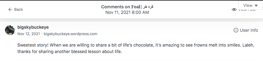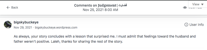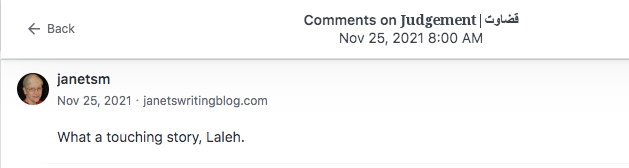 Reviews and comments By Laleh ChiniNovember 11, 2023 ( 2 ) Thank You. Share this: Click to share on X (Opens in new window) X Click to share on Facebook (Opens in new window) Facebook Click to share on LinkedIn (Opens in new window) LinkedIn Click to share on Tumblr (Opens in new window) Tumblr Click to share on Telegram (Opens in new window) Telegram Like Loading... Categories: bedtime story, fable, folk tale, moral, Short Story, Storytelling, taleTags: moral, narrative, parable, short stories, Uncategorized Related Articles Be That One/آن یکی باش By Laleh Chini20 hours ago Reviews and comments By Laleh Chini4 days ago The Price of Awareness/بهای آگاهی By Laleh Chini1 week ago 2 comments › christinenovalarue November 11, 2023 • 11:28 am 💜 LikeLiked by 1 person Reply ↓ Laleh Chini November 12, 2023 • 1:56 pm 🙏❤️ LikeLike Reply ↓ Leave a comment Cancel reply Δ