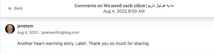 Reviews and comments By Laleh ChiniDecember 30, 2023 ( 8 ) Thank you. Share this: Click to share on X (Opens in new window) X Click to share on Facebook (Opens in new window) Facebook Click to share on LinkedIn (Opens in new window) LinkedIn Click to share on Tumblr (Opens in new window) Tumblr Click to share on Telegram (Opens in new window) Telegram Like Loading... Categories: award winner, bedtime story, fable, folk tale, moral, Storytelling, taleTags: moral, narrative, short stories, story telling, Uncategorized Related Articles Our Own True Place/جایگاه واقعی ما By Laleh Chini1 day ago Reviews and comments By Laleh Chini4 days ago Expensive Return Ticket/بلیط رفت و برگشت گرانقیمت By Laleh Chini1 week ago 8 comments › christinenovalarue December 30, 2023 • 9:00 am 🩶 LikeLiked by 1 person Reply ↓ Laleh Chini January 1, 2024 • 10:01 pm 💕 LikeLike Reply ↓ sherazade December 30, 2023 • 4:20 pm All the best for 2024 ❤️ LikeLiked by 1 person Reply ↓ Laleh Chini January 1, 2024 • 9:28 pm Happy new year. Sweetheart.😘❤️ LikeLiked by 1 person Reply ↓ sherazade January 2, 2024 • 4:27 am Ciaooo🍾💚 LikeLiked by 1 person Laleh Chini January 2, 2024 • 6:27 pm 🤗 LikeLike titti________ December 31, 2023 • 5:02 am Best wishes💌❕🎹🎼💓 LikeLiked by 1 person Reply ↓ Laleh Chini January 1, 2024 • 9:28 pm Happy new year.❤️ LikeLiked by 1 person Reply ↓ Leave a comment Cancel reply Δ
