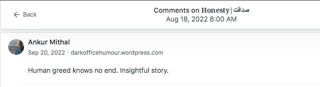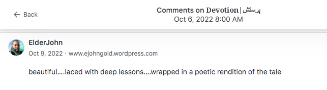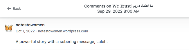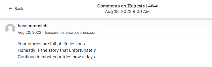 Reviews and comments By Laleh ChiniJanuary 20, 2024 Thank you. Share this: Click to share on X (Opens in new window) X Click to share on Facebook (Opens in new window) Facebook Click to share on LinkedIn (Opens in new window) LinkedIn Click to share on Tumblr (Opens in new window) Tumblr Click to share on Telegram (Opens in new window) Telegram Like Loading... Categories: award winner, bedtime story, fable, folk tale, moralTags: moral, narrative, oracle, parable, short stories, Uncategorized Related Articles Be That One/آن یکی باش By Laleh Chini6 hours ago Reviews and comments By Laleh Chini3 days ago The Price of Awareness/بهای آگاهی By Laleh Chini1 week ago Leave a comment Cancel reply Δ