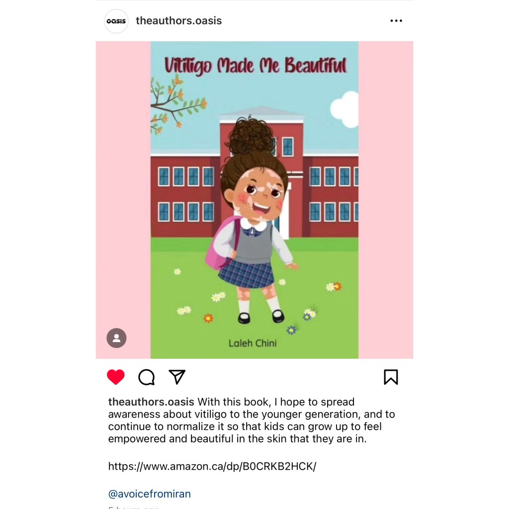 Comments and reviews By Laleh ChiniJune 3, 2024 ( 2 ) Share this: Click to share on X (Opens in new window) X Click to share on Facebook (Opens in new window) Facebook Click to share on LinkedIn (Opens in new window) LinkedIn Click to share on Tumblr (Opens in new window) Tumblr Click to share on Telegram (Opens in new window) Telegram Like Loading... Categories: awareness, children book, kid's book, moral, picture book, vitiligoTags: awareness, children book, kid's book, vitiligo Related Articles Be That One/آن یکی باش By Laleh Chini14 hours ago Reviews and comments By Laleh Chini4 days ago The Price of Awareness/بهای آگاهی By Laleh Chini1 week ago 2 comments › Anonymous June 7, 2024 • 9:55 pm okk( LikeLiked by 1 person Reply ↓ Laleh Chini June 9, 2024 • 12:56 pm 🌷 LikeLike Reply ↓ Leave a comment Cancel reply Δ