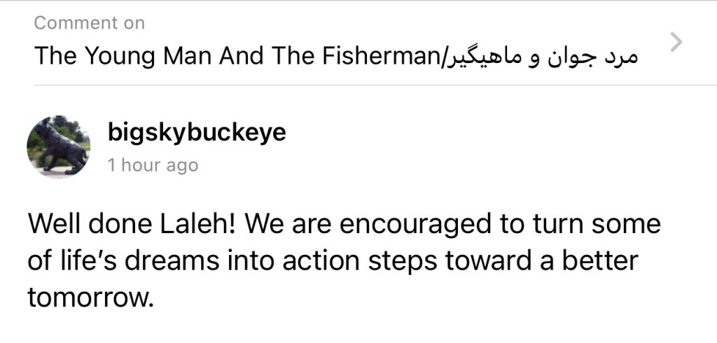Reviews and comments By Laleh ChiniAugust 4, 2025 Share this: Click to share on X (Opens in new window) X Click to share on Facebook (Opens in new window) Facebook Click to share on LinkedIn (Opens in new window) LinkedIn Click to share on Tumblr (Opens in new window) Tumblr Click to share on Telegram (Opens in new window) Telegram Like Loading... Categories: award winner, bedtime story, fable, fiction, Short StoryTags: moral, narrative, short stories, Uncategorized Related Articles Be That One/آن یکی باش By Laleh Chini6 hours ago The Price of Awareness/بهای آگاهی By Laleh Chini1 week ago Sense of Modesty/حس فروتنی By Laleh Chini2 weeks ago Leave a comment Cancel reply Δ