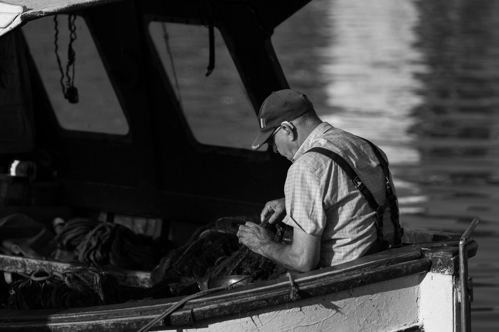 The woman repeats, “But I’m not fishing. I’m just reading.”